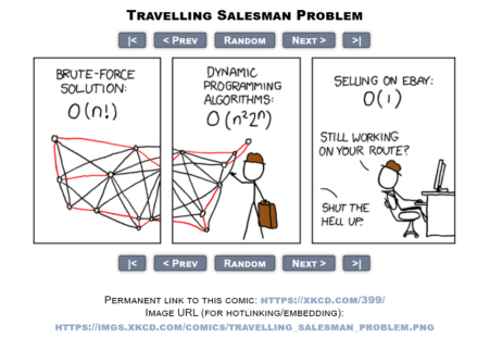 旅行推销员问题是如此著名,或者说难以攻克,甚至有专门的 xkcd 漫画!