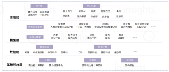 我们先从宏观的产业布局来看,尽管教育领域的应用需要通过严格的审查流程,我们依然可以观察到,AI+教育呈现百花齐放的态势。