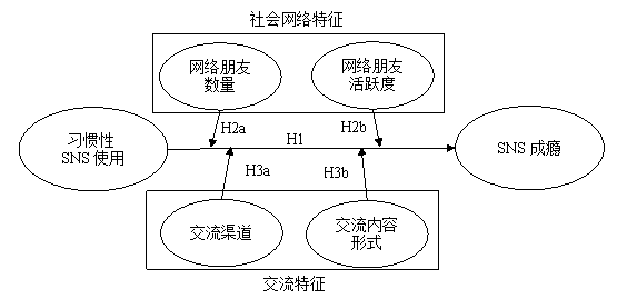 H2b:如果用户的网络朋友在SNS上高度活跃,则习惯性SNS使用更有可能导致SNS成瘾。