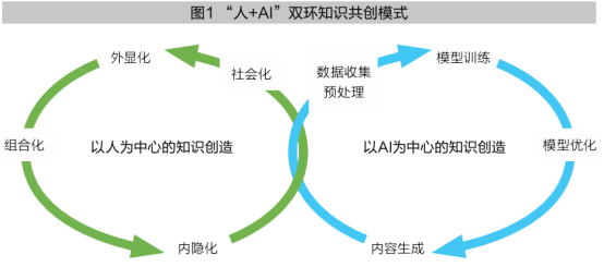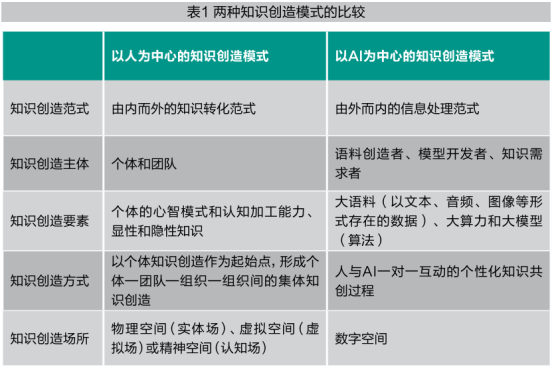 总的来讲,以AI为中心的个性化知识创造模式和以人为中心的集体知识创造模式存在较大差异(见表1)。