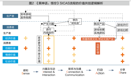 经过长时间的积淀,由各方共创的黑神话价值在这一阶段迎来爆发。游科方面兑现了远超投入的经济价值,而消费者也收获了具有国际顶尖水准的充满中国独特魅力的3A游戏的美好体验,功能价值、社会价值、情感价值满满。另外,政府和社会也借着“悟空热”成功宣传文旅产业,收获了一定的经济价值。