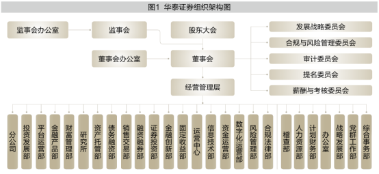 为积极推进数字化转型,华泰证券成立了一级部门数字化运营部(见图1),其职能包括数字化转型推进,机构客户平台化经营和组织创新。可以发现,该部门不涉及业务应用研发、数字化平台打造、基础设施与运营安全保障等职能,而是着眼于催生业务深层变革和管理创新,实现技术创新到管理创新的跨越。从权力隶属上来看,数字化运营部直接向经营管理层汇报,与业务部门为同级。这一举措不仅实现组织架构的扁平化,还赋予数字化运营部充分的内部话语权和自由裁量权,有利于与业务部门搭建合作桥梁。