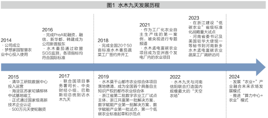 水木九天专注于设施农业(Protected Agriculture)、自动化生产和数智化管理,致力于构建符合中国气候和市场需求的未来农业场景,推动低碳环保高效的生产方式,以应对粮食安全与农业碳排放问题,促进农业现代化与乡村振兴。作为农业科技领域的先行者和探索者,水木九天将传统农业与现代科技融合,依托科创人才和工业技术支撑,将自身打造成知识密集型的农业科技企业。历经十年探索,水木九天实现了从零到一的创新突破,为中国农业与工业协同发展提供了“负碳”创新模式,成为农业新质生产力的典型代表。其在浙江湖州开发的水木莫干山蔬菜工厂作为国产化民生保障项目典型,于2021年3月被中央电视台报道;其建立于广泛的工业场景中的蔬菜工厂,作为典型农业创新实践相继得到人民日报、新华社等专题报道(见图1)。