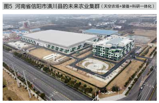 2022年11月,水木九天与河南省信阳市潢川县人民政府签订合作协议,联手打造国内规模最大的“天空农场”以及未来农业科技创新和装备制造中心项目(见图5)。该项目集工业、农业、科创及商业于一体,是融合数字园艺智能装备制造中心和智能水果分选线的综合平台,可基于色彩、糖度、重量等参数对水果进行智能分选。天空农场顶层被设计为近50亩、高9米的种植区域,实现全年无休的连续生产,其固碳能力相当于30万亩北方森林,为提高土地使用效率和能源综合利用提供了新思路。此外,水木九天还在兰考与焦裕禄干部学院合作开展新农业乡村振兴培训,促进领导干部对农业和乡村振兴的认识,进一步推进农业产业升级。